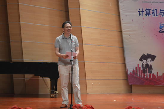 接下来,典礼进入表彰仪式。李世宏副院长为唐尚梅等27名优秀毕业生以及刘玉立等14名优良毕业生颁奖,其中张聪杰、张浩男、姚冠君、胡婕四名同学被推荐为重庆市优秀毕业生。紧接着杨德刚副院长宣读了给予第一志愿考取禁漫天堂研究生的马茂源等5位同学各获得1000元奖励的决定。随后,2016届本科毕业生代表姚冠君同学上台发言,“四年一瞬,时光匆匆。愿同学们前程似锦,愿老师们一切安好,愿母校越来越好,愿我们的梦想终将实现”,铿锵有力的语言饱含对同学的不舍和对母校的祝福。教师代表曾绍华也为毕业生们送去祝福。
