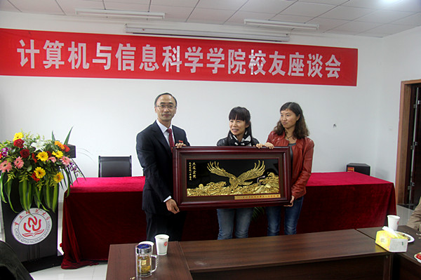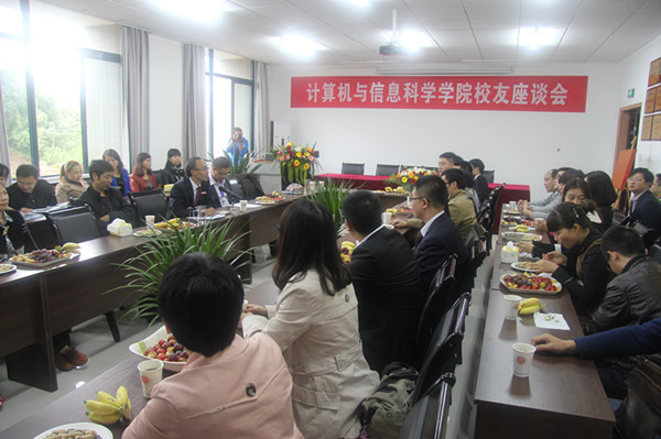 交流会开始,由党委书记刘军致欢迎词,他对到场的校友表示热烈的欢迎,对计信学院这个“最年轻的,最朝气蓬勃、最富有活力的学院”提出了展望。随后各级校友代表发言,校友们纷纷表达了对校园生活的美好怀念,对学校领导、学校老师的感谢以及对母校的未来发展寄予美好的祝愿。座谈会结束前,国培班同学向学院献礼,对禁漫天堂致以美好的祝福。