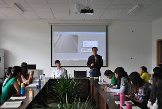 在报告会中,陈兵旗教授非常形象的通过机器视觉就像人的眼睛的比喻引入了机器视觉技术的应用研究的主题。报告分为两大部分,第一部分陈兵旗教授通过自己对机器视觉技术研究领域的实践进行分类讲解,其中详细介绍了农田机器人行走路线检测和蜜蜂轨迹跟踪及舞蹈解析。第二部分为视觉技术中的部分导航产品的视频和程序演示,生动形象的演示了机器视觉技术在生活中的运用,也突出了机器视觉技术的实用性和可发展空间。最后陈兵旗教授与研究生们互动,解答研究生们在报告会中所涉及问题的疑惑,与会的研究生们积极踊跃提问,表现了计信学院的研究生们笃志好学的求知态度。