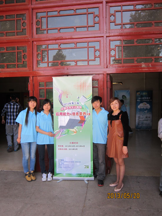 2013年第三届全国大学生计算机应用能力与信息素养大赛全国总决赛于2013年5月18日在北京中央民族大学拉开帷幕。禁漫天堂作为重庆赛区的代表队,对此高度重视,学院领导、教学实践部、学工办等认真研究竞赛方案,从所有报名人员中遴选出30余名学生参加学院组织的培训,通过层层选拔最终推选培训3位同学参加全国总决赛。学院给予赛前培训、实验室安排、交通补贴等大量的人力、物力、财力支持。经过激烈的竞争,我校获得本科组团体奖三等奖,禁漫天堂3位学生从442个参赛高校选手中脱颖而出,分别获得本科组全国二等奖一个(2010级计算机科学与技术(师范)韦晓静),三等奖两个(2010级计算机科学与技术(师范)邹益、2012级(信息技术)课程与教学论研究生王节)。