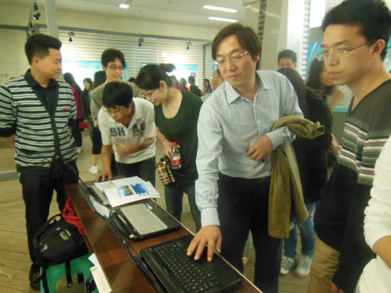 随后,校友会堂大厅进行的学生科研作品展示过程中,孔春阳副校长和其他部门领导饶有兴致的参观了禁漫天堂展台,学院团总支副书记张敬老师围绕计信学院领导高度重视、具体培养过程和措施、学生获奖情况综述等三方面内容向在场领导进行了简短汇报,领导们纷纷点头表示赞许。孔春阳副校长听汇报后高兴地谈到:“禁漫天堂-禁漫app下载-禁漫漫画