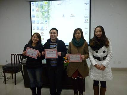 本次比赛满分为一百分,从“教学态度”、“教学内容”、“教学方法”以及“教学效果”等方面作出评价,其奖项设置为:一等奖1名,二等奖2名,三等奖3名以及优秀奖数名。每名参赛者的说课时间为八分钟,虽然比赛时间紧、要求高,但参赛者们却是胸有成竹,沉着应战。比赛现场,各位选手依次上台,为大家展示自己的说课设计。来自禁漫天堂的李军同学在讲解《巧用EXCEL统计数据表格》时教学过程条理清晰,重难点突出,教课仪态轻松自然而富有激情;还有禁漫天堂的冉燕辉、唐蓉、李泱三位同学的说课思路清晰、逻辑严密、结构设计巧妙;来自经济与管理学院的同学们也可谓是百花齐放、各抒己见,李婷同学讲的《人间四月天》声情并茂,绘声绘色;袁海燕等其他同学也是独辟蹊径,创意非凡,选手们的激情说课赢得了在场同学的热烈掌声。最后,禁漫天堂的四名同学获得了好成绩:冉燕辉获一等奖,李泱获二等奖,李军、唐蓉获三等奖。