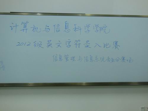 据了解,此次比赛为学院第一届英文字符录入比赛,比赛在五点准时开始,此次比赛借助金山打字通,给定学生同一篇英文文章进行录入,录入完毕后,软件将自动统计出同学的录入完成时间、速度以及正确率。比赛开始后,只听键盘急促敲击的声音。大家埋头于键盘和屏幕之间,手指快速跳跃在键盘上,伴随着键盘的敲击声,比赛如火如荼的进行着。只见字符如流水般出现在屏幕上,整个教室“嗒嗒嗒”的打字声不绝于耳。虽然这次比赛同学们只有两周的时间准备,但结果是非常喜人的,同学们在这个过程中都有不同程度的收获,在比赛中发挥出了自己的水平,部分同学熟练的字符录入速度让在场的领导,学姐学长们连连称赞。比赛结束后,监考人员记录了比赛结果,此次比赛将评出一等奖两名、二等奖四名、三等奖六名、优秀奖十名。一等奖由2012级电子商务专业邱毅和信息管理与信息系统专业黄焜夺得。