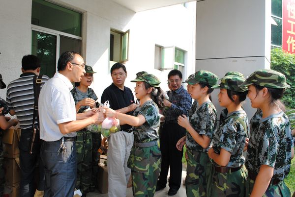 同学们排着整齐的队伍,由学院领导将带去的12件苹果和450斤橘子进行一一分装,交到每一个学员手中。“感谢学院领导!感谢学院老师!……”同学们微笑接过领导手中递来的慰问品,眼神中透露出对学院的衷心感谢和欣喜的情绪。