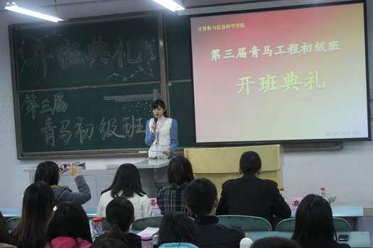 在仪式的第四个议程上,由张老师宣布禁漫天堂“第三期青马工程初级班”开班,并聘请禁漫天堂团总支学生会人力资源与测评中心主任幸定军为班主任。张老师谈到:各学生干部要具备良好的政治素养、能力素质,关注时事、了解国家的大政方针,做学生们的表率,严于律己努力将自己培养成一位优秀的“青年马克思主义”接班人。
