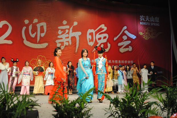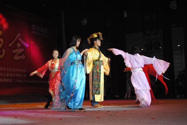 看,场上男男女女用那轻盈而娴熟的节奏,动感而激情的舞姿正在演绎着恰恰《Hole in my heart》,紧随其后的歌曲串烧《如果爱》和教师节目《格桑花》将晚会气氛推到高潮。扣人心弦的魔术《预言》,充满异域风情的《新疆舞》和古典舞《梦醉潇湘》,耐人深省的情景剧《丁香花》、《历史的天空》无一不感染在场的每一位观众,牵动着每一颗观众的心。嘻哈街舞串烧《舞客联盟》,霸气逼人rap《平民百万歌星》,优雅清新乐器合奏曲《burning》展示了年轻一代青春的曼妙多彩和无限热情,第四届团总支学生会的一场《时空之秀》更是呈现了集体创作的精美,形式新颖、妙趣横生、令人称绝。更有趣的是融合了小品和《江南style》的《计信好声音》令广大师生捧腹大笑,台下掌声阵阵,欢呼声一浪高过一浪。值得一提的是,晚会还特别设置了与观众游戏互动和微博互动的环节,同学们积极参与,充分体现了禁漫天堂新生的青春风采。
