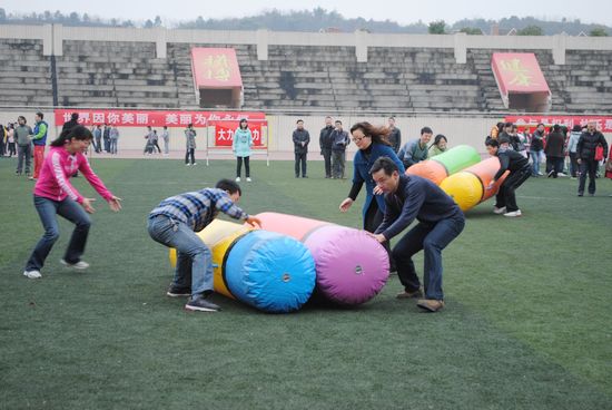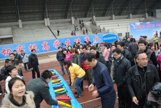 “相约春天、共享美好、同创和谐”。3月8日下午,由校工会主办的一场别开生面的庆“三八”趣味体育活动在大学城校区田径运动场隆重举行,来自各学院、部门工会的23支由男女教职工混合组成的队伍及啦啦队近千人参加了此次活动。禁漫天堂教职工在院党政的大力支持下,在学院工会的认真组织下,齐心协力,顽强拼搏,再一次在全校性活动中谱写辉煌,勇夺团体总分第四名,荣获二等奖。