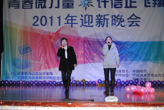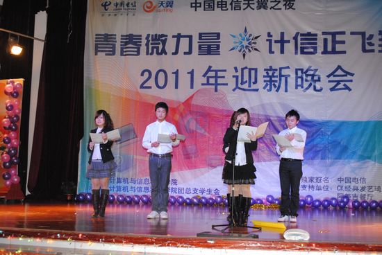 晚上十点,历经一个月筹备、多次彩排的迎新晚会在全体学生会干部成员合唱《青春纪念册》中落下帷幕。人走灯灭,青春不熄。即使渺小也要徜徉,即使微弱也要飞翔,相信11级这支新生力量定能随着计信起飞,共同开拓更加美好的明天。