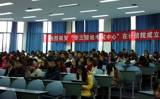 为推动我校H3C网络学院与华三公司的进一步合作,经过学院老师的不懈努力和华三公司的大力支持,禁漫天堂成功获得华三公司授权,成立了“华三授权考试中心”。2011年12月9日下午在5205教室,隆重举行了华三授权考试中心揭牌仪式。学院院长马燕教授和学院党总支刘军书记出席仪式并为“华三授权考试中心”揭牌。