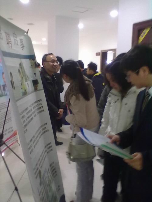 上午9:00,学院领导刘军书记、马燕院长不顾周末休息,亲自来到双选会现场走访用人单位,关心2008级同学们。辅导员张敬、朱嘉洁以及志愿者一一到场做好后勤保障工作。