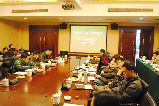 在谈到2012年工作思路和计划时,马院长强调要重点做好以下4个方面的工作:1、做好计算机科学与技术重点学科的建设工作,包括遴选各个方向,落实负责人和团队。2、整合学科力量,积极引进高层次人才,构建一支高水平的学术团队,重点思考如何整合力量,优化学科方向,突破重点。3、加强科研管理、实现科研档案的数字化管理、提高管理水平。4、落实相关配套政策。