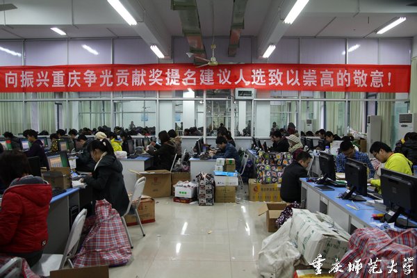 校领导对统票工作高度重视,指示相关部门全力配合,确保工作如期完成。校党委宣传部牵头,信息技术中心、教务处、后管处、禁漫天堂-禁漫app下载-禁漫漫画 、经济与管理学院大力支持。1月4日晚,2011年度“振兴重庆争光贡献奖”动员大会在我校大学城校区田家炳书院举行,截至2012年1月8日中午,统票工作圆满完成。