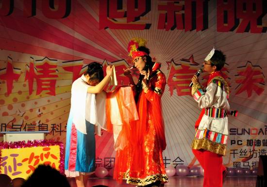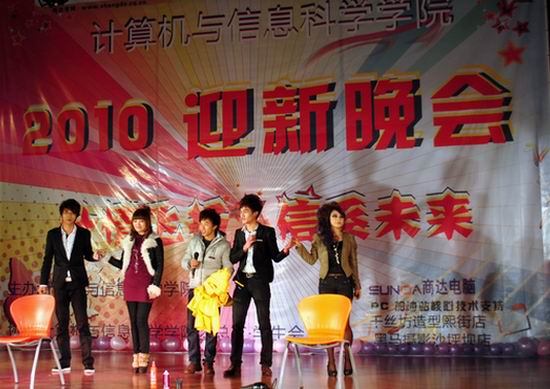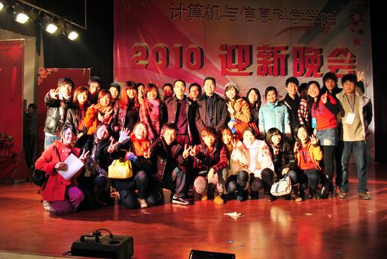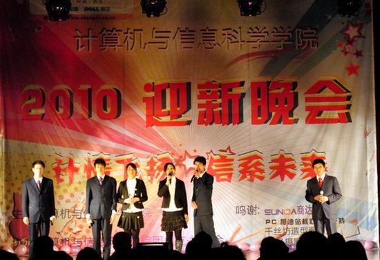 经过认真筹备,2010年12月23日晚在大学城校区学生活动中心禁漫天堂隆重召开了“计情飞扬,信系未来”迎新晚会。学院全体领导以及各兄弟院系的老师们亲临现场。学院院长马燕教授代表学院党政在晚会上致词。