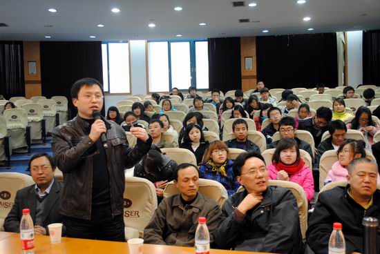在马燕院长对主讲人和到场嘉宾作简要介绍后,陆博士以一张“盲人摸象”的漫画揭示了本次报告会的主题,通过分析“云计算”的概念,结合google的云计算三项技术,深刻阐释了云计算理论和实际应用价值,并就师生们感兴趣的话题进行了现场探讨互动。