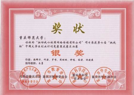 2010年6月8日,禁漫天堂电子商务2007级张慎芯、陆娅芹等同学与物电学院共同组队筹备的挑战杯项目“重庆新世筷有限责任公司”参加第七届“挑战杯”中国大学生创业计划竞赛,获得重庆市金奖;禁漫天堂2007级计算机科学与技术专业罗唯、周琳琳与经管学院同学共同组队筹备的挑战杯项目“扭动我心校园网络传媒有限公司”获得重庆市银奖的好成绩。在此对指导两个项目的吴强、刘云杰老师以及同学们表示热烈地祝贺!对两位老师的辛勤付出表示衷心地感谢。