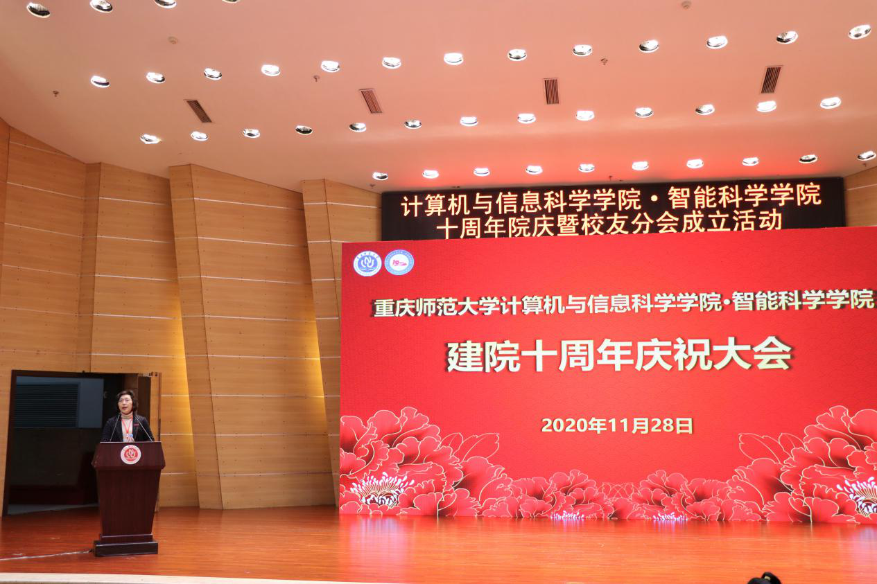 在雄壮的国歌声中,大会拉开序幕。十周年庆宣传片《拾级而上,“计”往开来》回顾了计信学院的发展变迁,展现了计信人的风采。随后,学院院长魏延致欢迎词,代表学院向莅临现场的领导、嘉宾、全院师生表示热烈欢迎和衷心感谢。魏院长在讲话中回顾了建院十年的艰苦历程,总结了学院十年的收获,提出了将努力把学院建设成为大数据智能化特色鲜明、立足重庆、在西部地区乃至全国有影响力的应用型新型二级学院的发展目标。