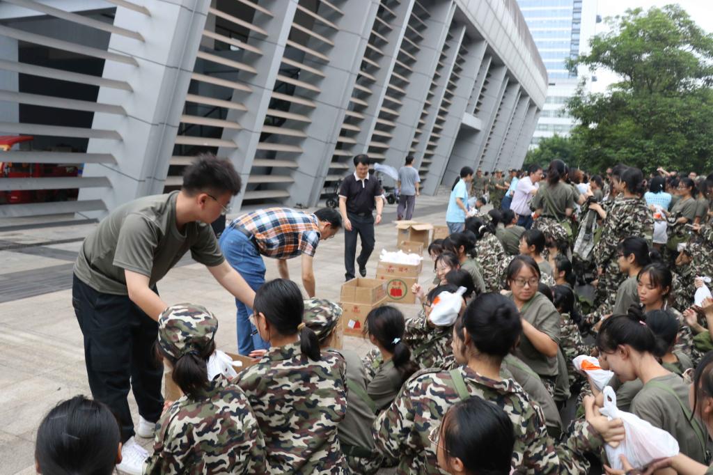 2021年9月18日下午4时,第十三届团委学生会干部们提前在体育馆旁布置现场,准备好相应的物资。5时,新生们下训后按照连队依次在指定位置集合。首先,陈兰书记做了简短的发言,她谈到,军训是大学生活的第一课,军训虽艰苦,但磨炼了同学们的意志,进一步培养同学们的家国情怀,同时也是同学们友情升温的一大桥梁。另外,陈书记也对新生们军训中的精神面貌给予肯定,为他们加油鼓劲,希望大家在后续的训练中再接再厉。随后,禁漫天堂领导及团学会成员为新生分发军训慰问品,送上的不仅是一份军训慰问礼物,更是一份来自计信学院的温暖关怀。